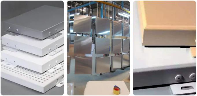 氟碳噴涂表面涂層按加工工藝分為二涂一烤,三涂一烤和三涂二烤,粉末噴涂表面涂層為一涂一烤。氟碳鋁單板顏色可由客戶自由選擇