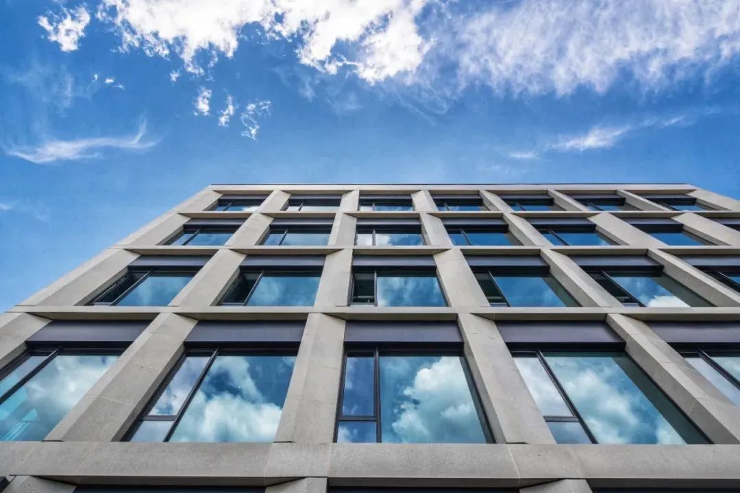 北京金融街·金悅中心7棟商業(yè)辦公樓建筑立面以米黃色仿石鋁板結(jié)合玻璃幕墻的設(shè)計(jì)手法,強(qiáng)調(diào)不同體塊轉(zhuǎn)換之間的虛實(shí)對(duì)比,加強(qiáng)折線所帶來的建筑張力,利用深灰色金屬百葉、灰色鋁板與楔形石材窗框豐富立面變化。