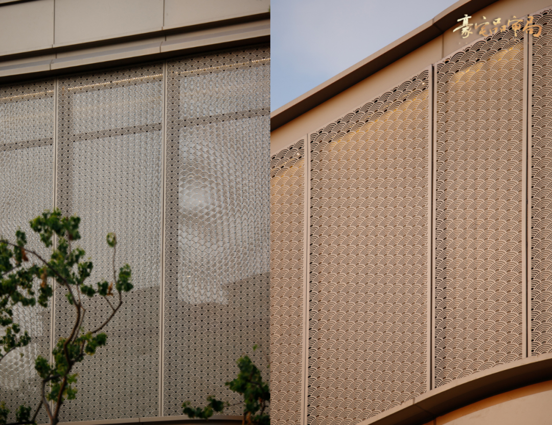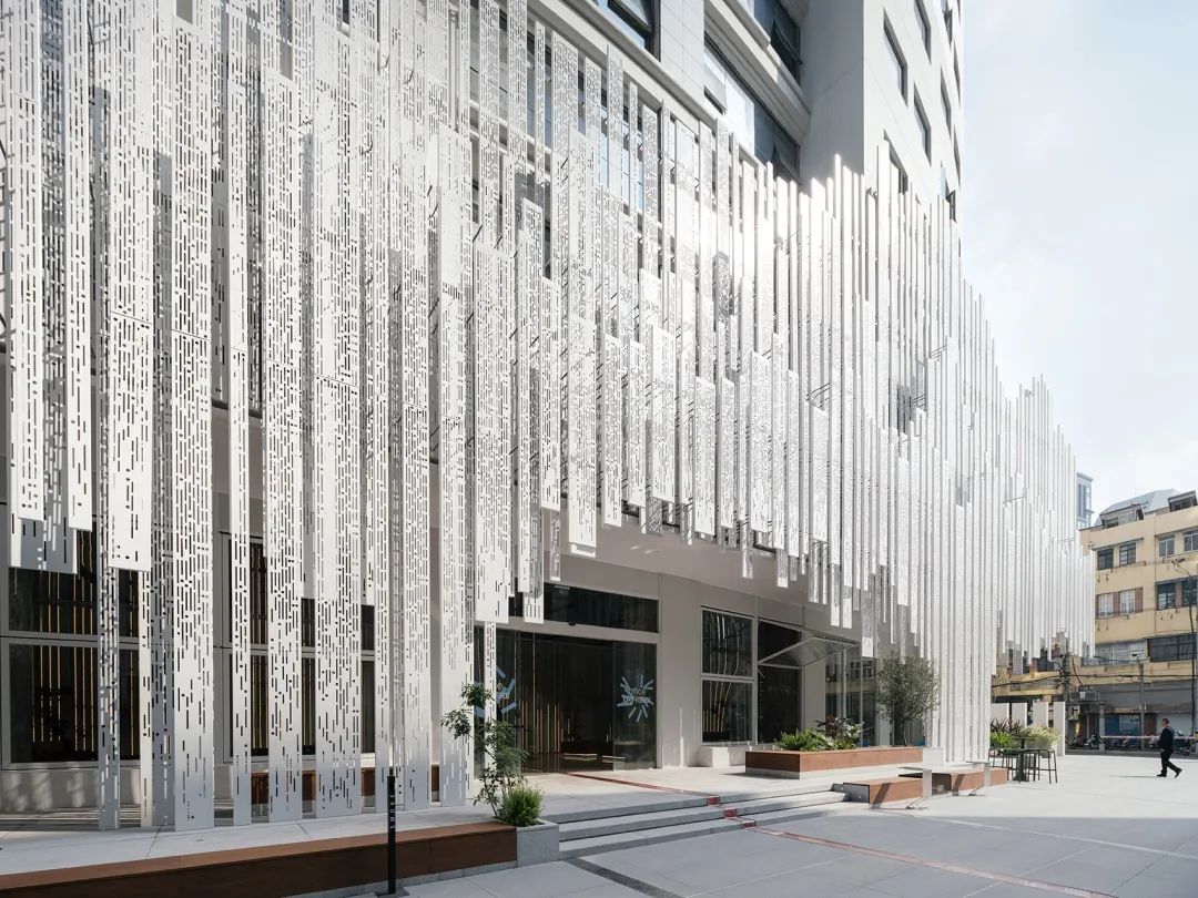 設備平臺和大塊面的外墻全部由穿孔鋁板裝飾。