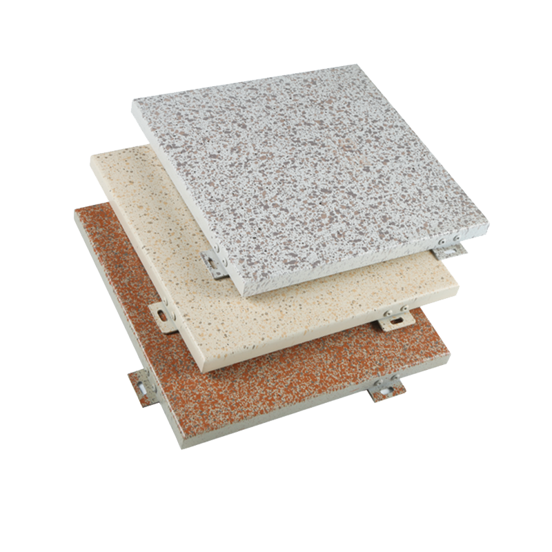 4、仿石材鋁單板。仿石材鋁單板是在鋁單板的基礎(chǔ)上,通過特殊的噴涂工藝加工,使鋁單板具有強烈石材立體感的新型裝飾材料。