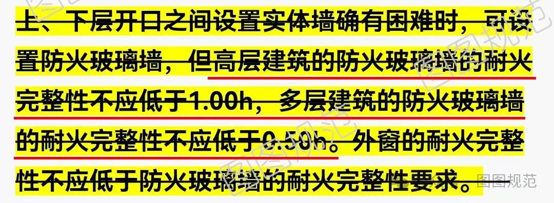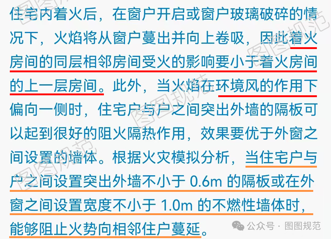 分戶墻防火措施,水平方向要求相對(duì)于豎向方向要求要低,在《建筑設(shè)計(jì)防火規(guī)范》 6.2.5條文說(shuō)明中也有明確解析: