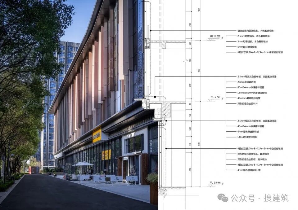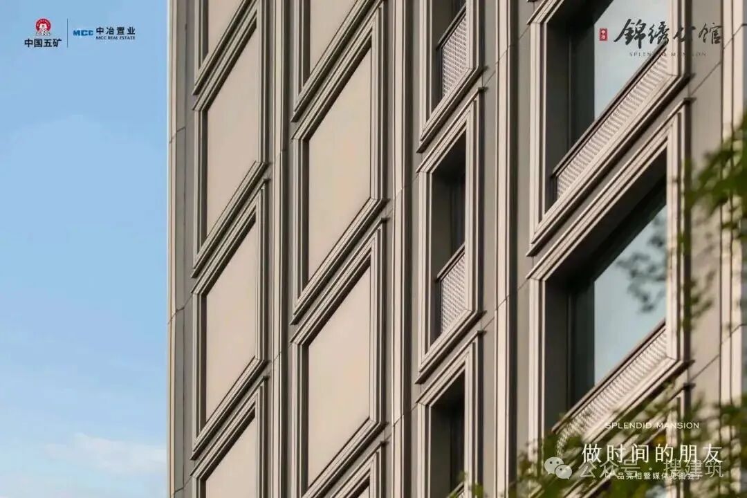 杭州錦繡公館建筑外立面建筑立面采用鋁復(fù)合材料,與普通的鋁單板相比,鋁復(fù)合板整體板面平整,棱角分明,在高端項(xiàng)目上應(yīng)用較為廣泛。香檳色鋁復(fù)合板,搭配深色石材,像巧克力一般有著一格格的精巧脈絡(luò),以及絲綢一般的鎏金光澤,在陽光下熠熠生姿。